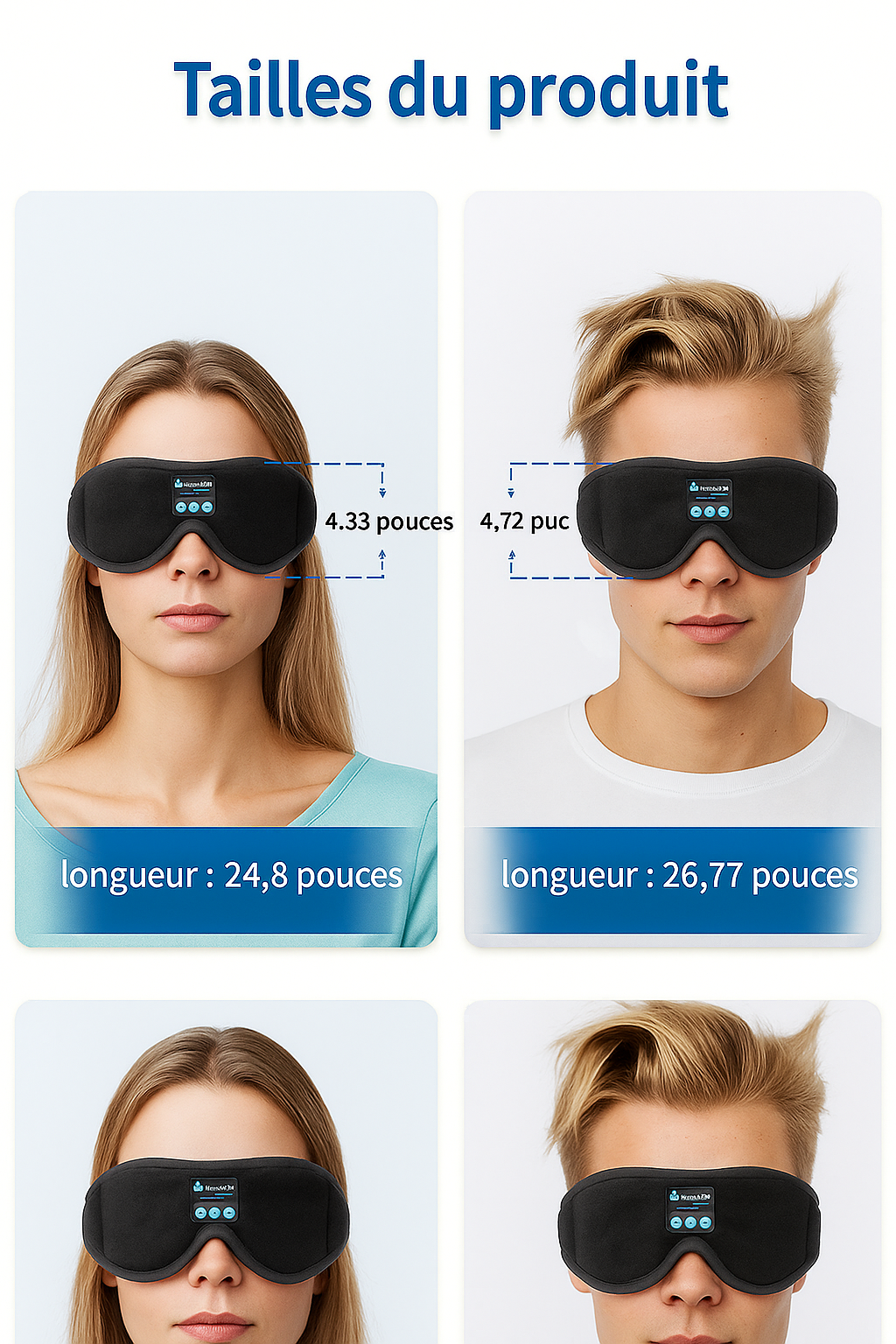 Découvrez le secret de nuits parfaitement réparatrices et de moments de détente absolue, sans aucun fil. Notre masque-écouteurs innovant est votre sanctuaire personnel pour échapper au stress et plonger dans un sommeil profond.